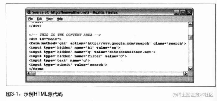 在浏览器中浏览了网页之后,下一步就是查看其HTML源代码。尽管这种方法很简单,但仍然非常值得去做。查看源代码有两项作用;它可以帮助你发现最明显的安全问题,但最重要的是,它使你能够为将来的测试建立一个比较基准。对攻击失败之前和之后的源代码进行比较,你就能够调整你是输入,了解到哪些通过了,哪些没有通过,并再次尝试。