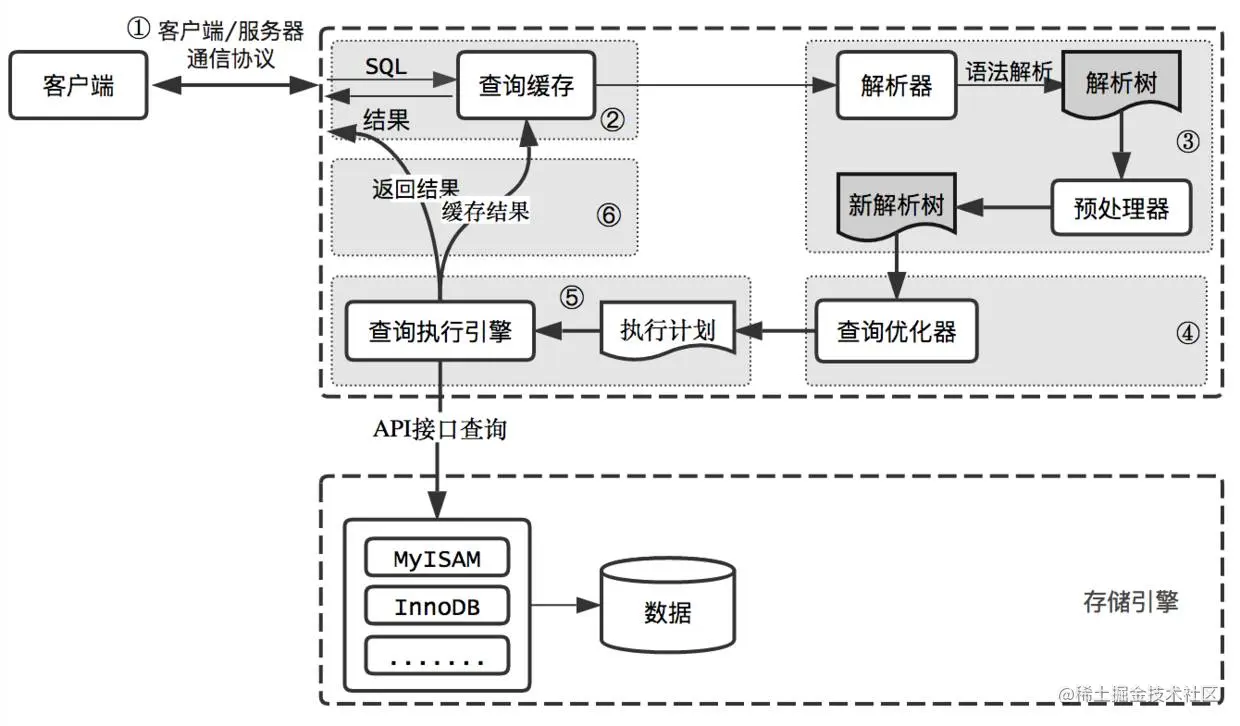回头总结一下MySQL整个查询执行过程,总的来说分为6个步骤: