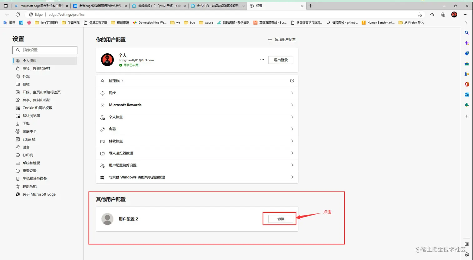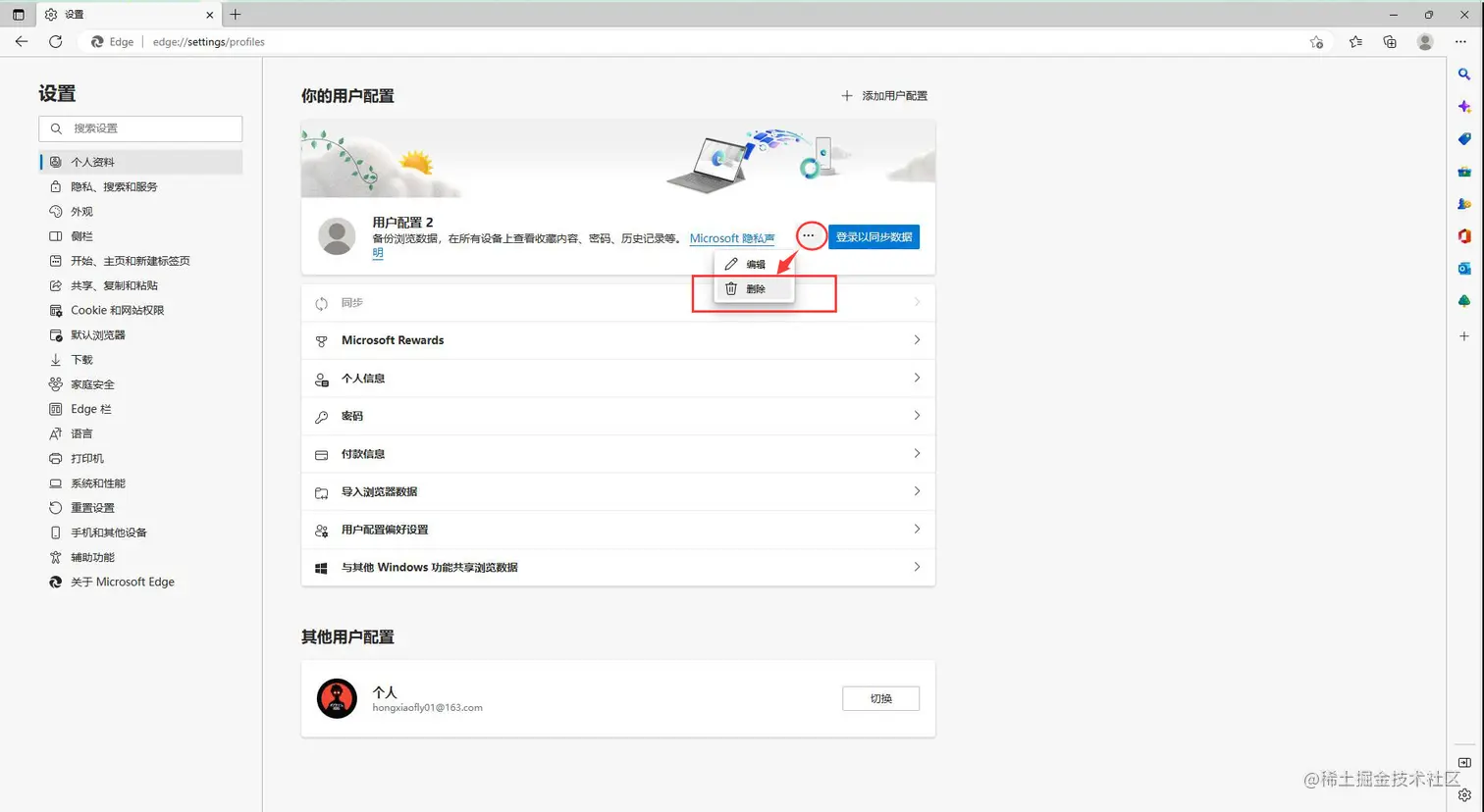 解决Microsoft Edge固定到任务栏是我头像的问题 wlwhong 2023-08-10 442 阅读1分钟 问题描述: 今天发现桌面多出来一个Microsoft Edge浏览器的带头像的快捷方式,并且之前固定到任务栏中的Microsoft Edge同样也带着头像。 太™丑了,然后我的强迫症就犯了,,,, 原因: 你设置了多个Microsoft Edge账户 解决方案: 删除多余的账户即可 解决步骤: 1、打开浏览器设置 2、切换到多余的用户配置 3、删除该用户配置