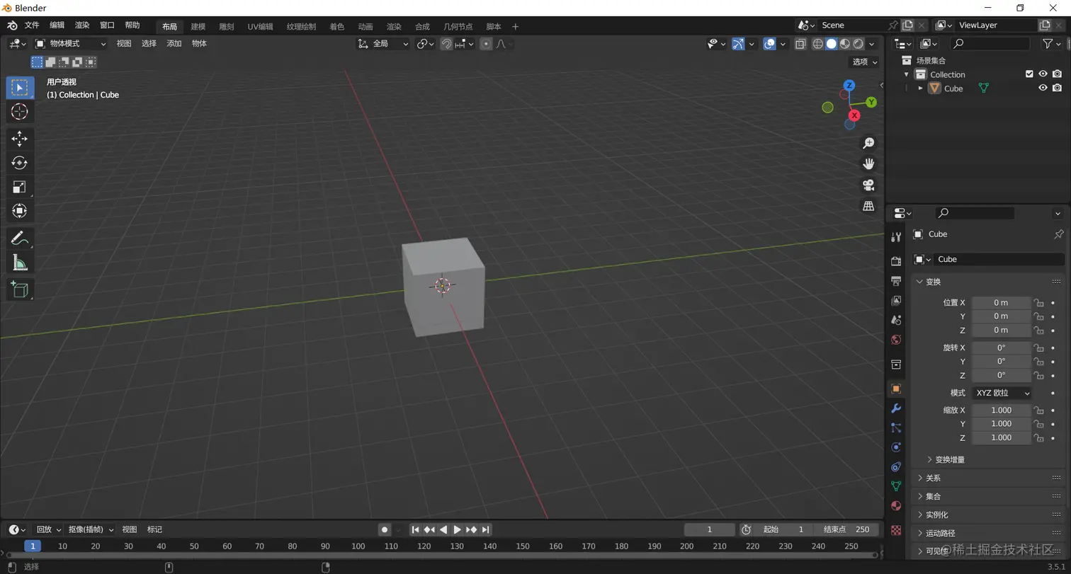 1、第一步,打开Blender软件,导入模型:(本教程使用一个简单立方体模型来完成演示教程)