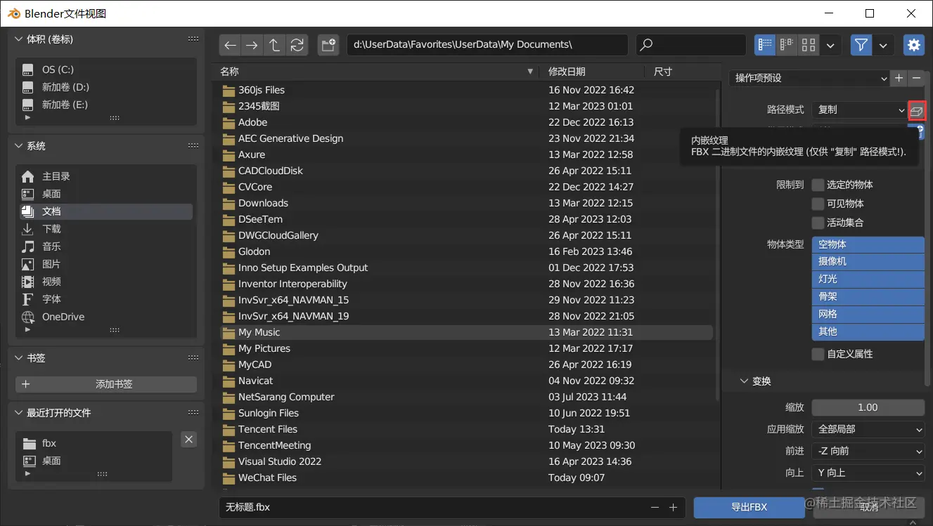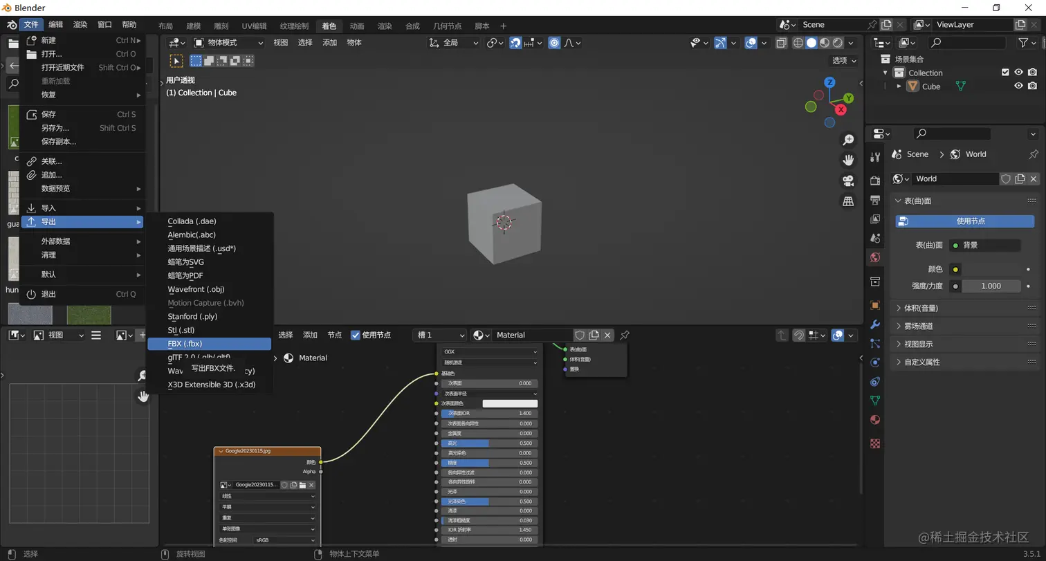6、下一步,导出带有材质的立方体模型:点击文件-导出FBX