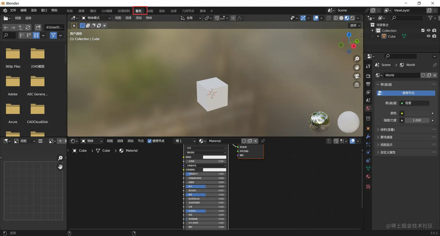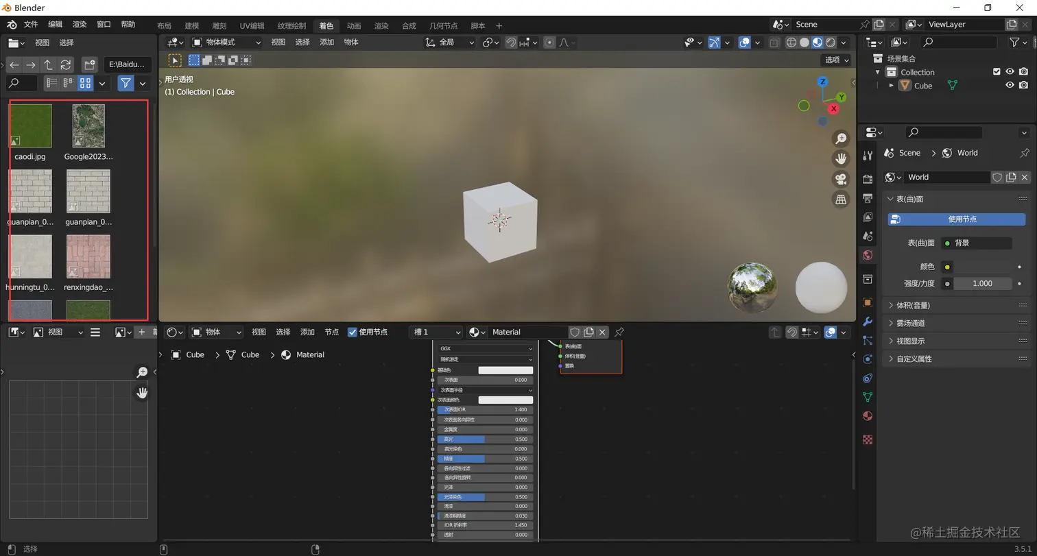 到了这一步可以看到立方体模型上已经被贴上了材质贴图。