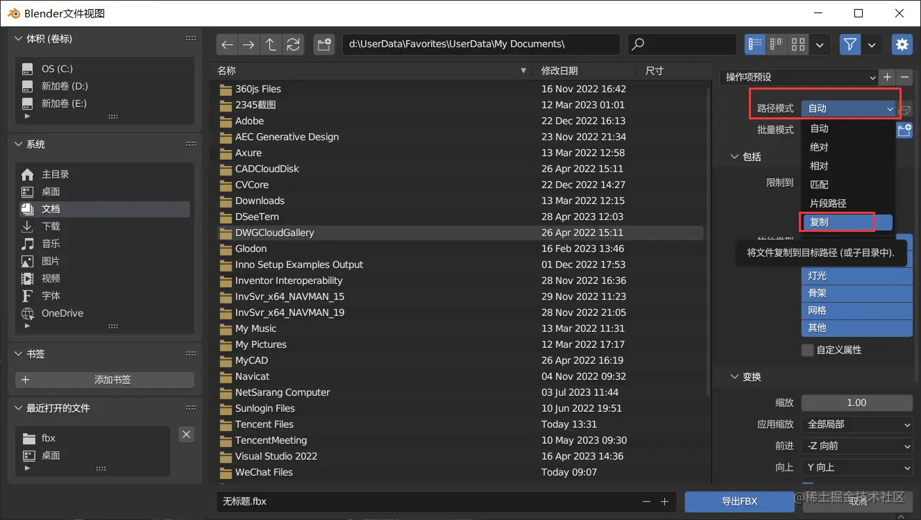 选择路径模式-复制模式:
