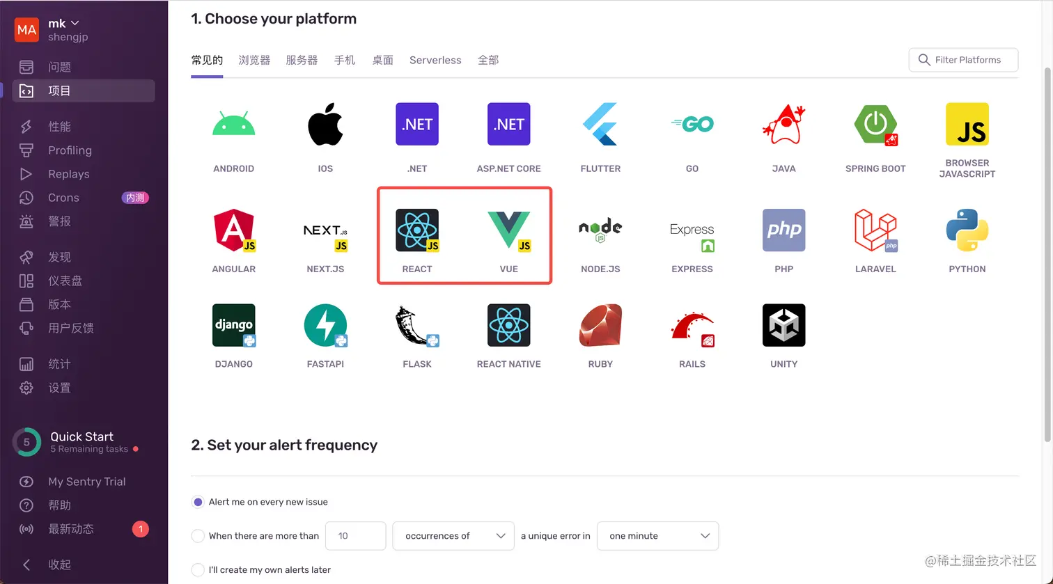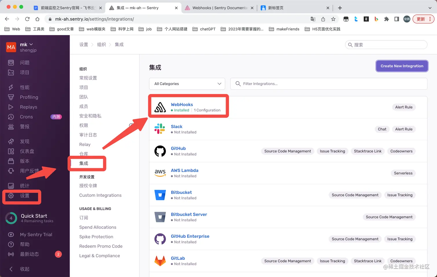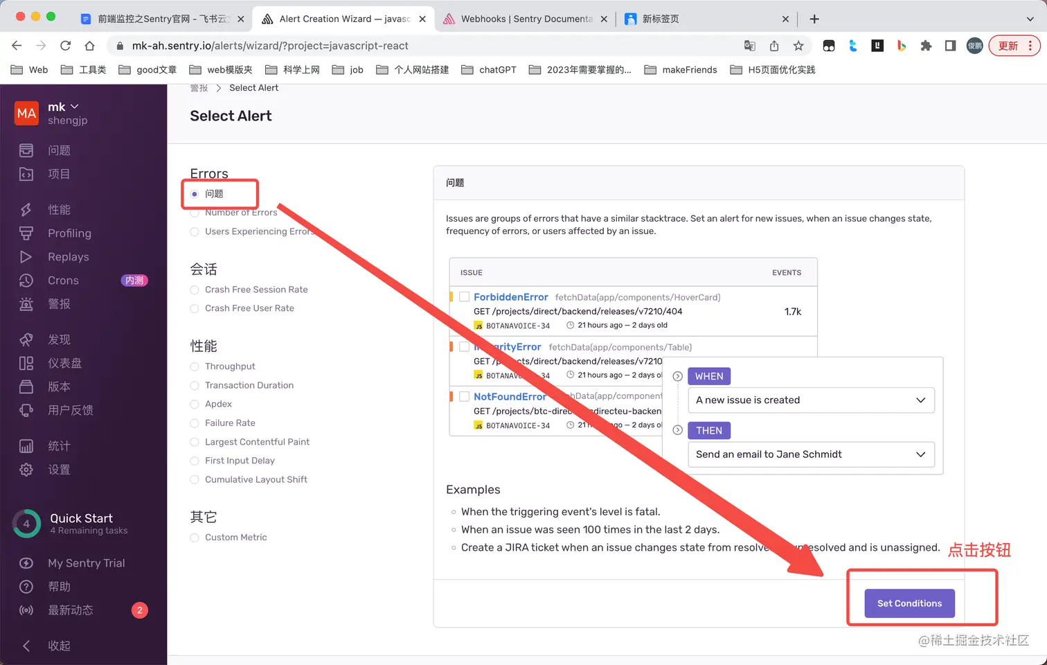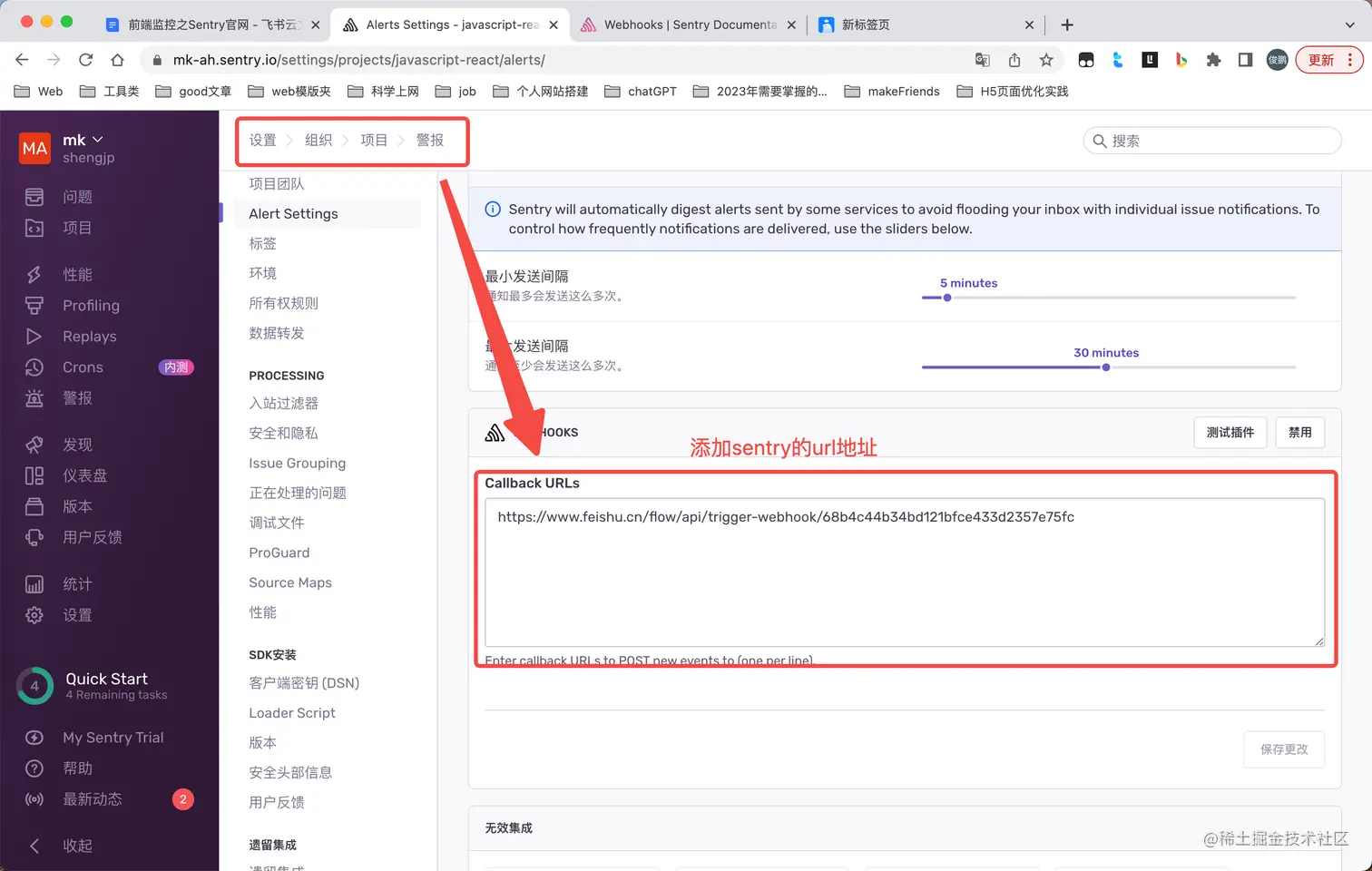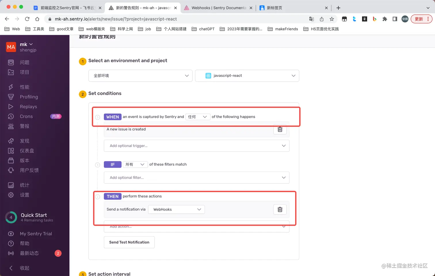 **目的:**当Sentry捕获到错误后,主动通知开发人员