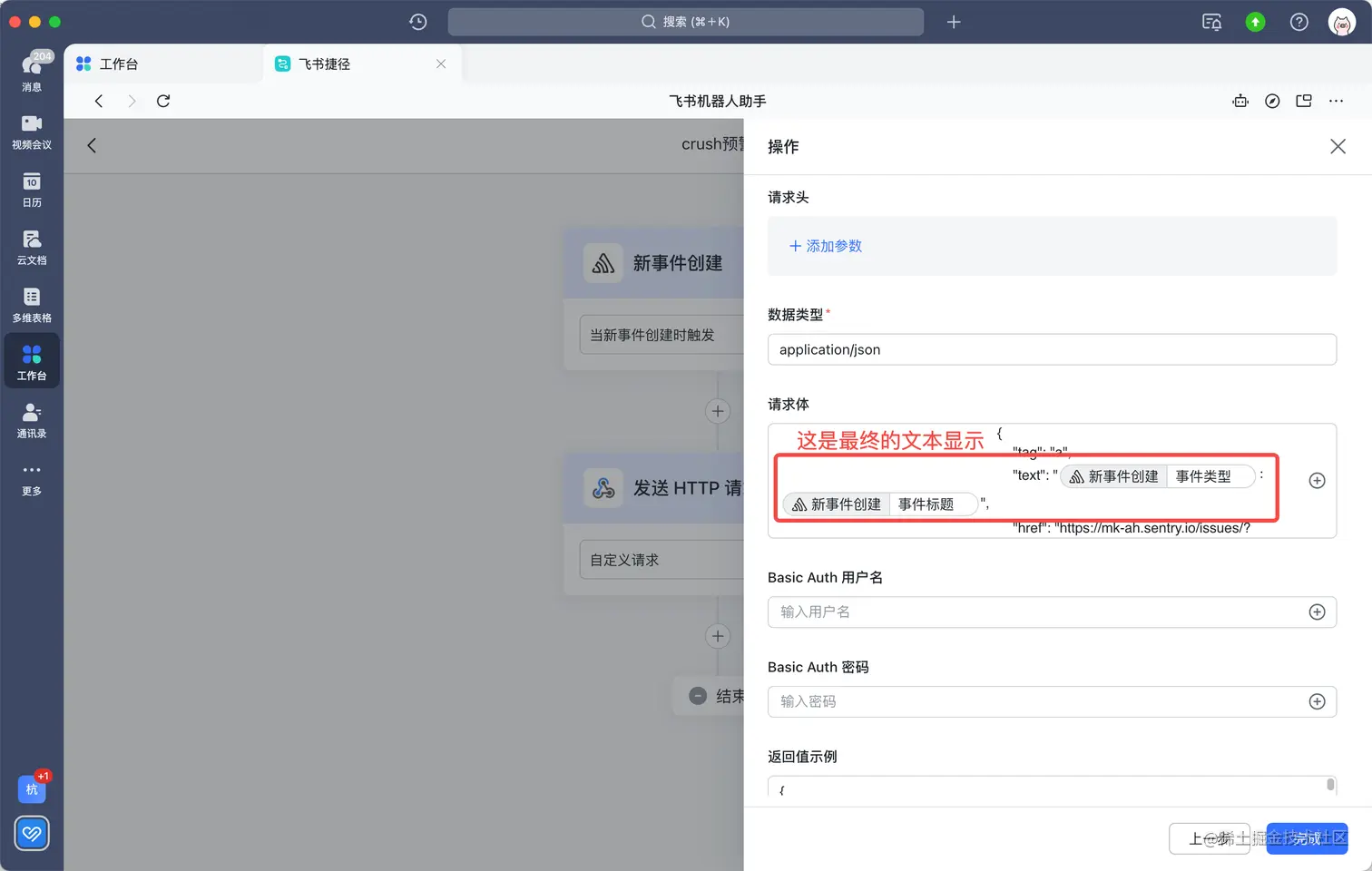 请求方式:post URL:刚刚的步骤2机器人的url复制粘贴过来