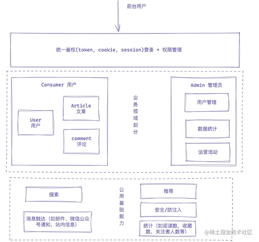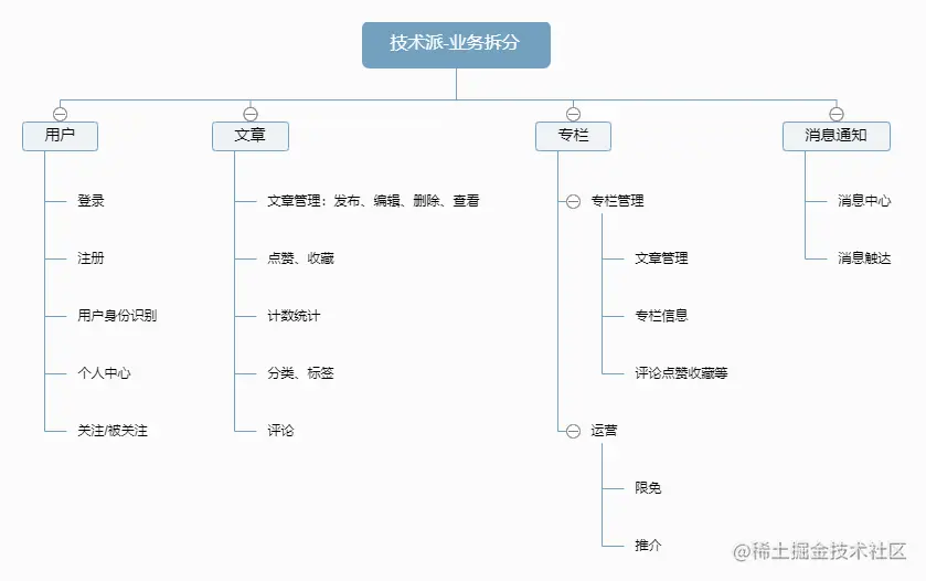 从上面这个图,是否能抓住整个技术派的业务模块?是否能确定业务模块的定位(哪些偏业务属性,哪些偏技术属性)?是否能确定不同角色的侧重点?