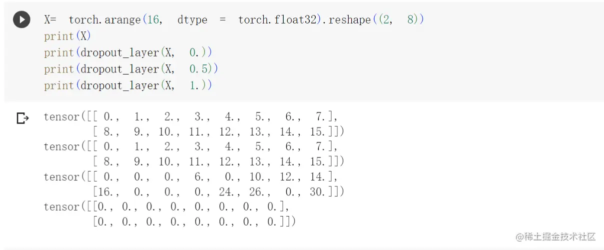 mask = (torch.rand(X.shape) > dropout).float() #mask非1即0,小于dropout的失活