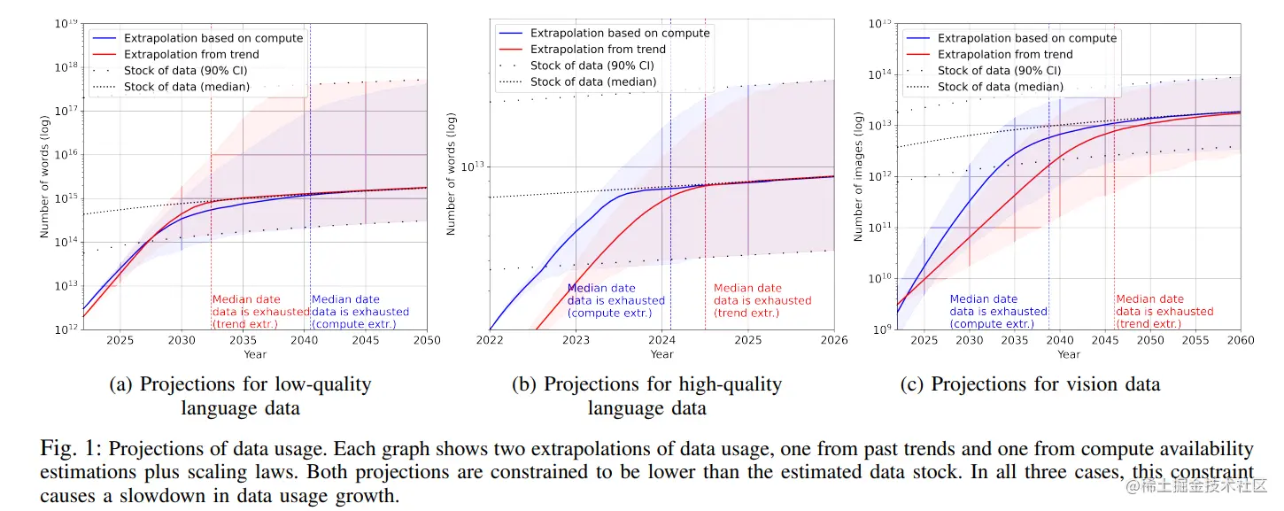 传统的大模型训练面对的显著挑战之一,就是高质量的训练数据稀缺的问题,通常,这些模型在训练阶段都会依赖公开可用的数据集,比如维基百科、书籍、源代码等等,而最近也有研究表明,高质量的语言数据有可能在 2026 年达到枯竭点,而更低质量的数据也将在 2030 年到 2050 年间耗尽。