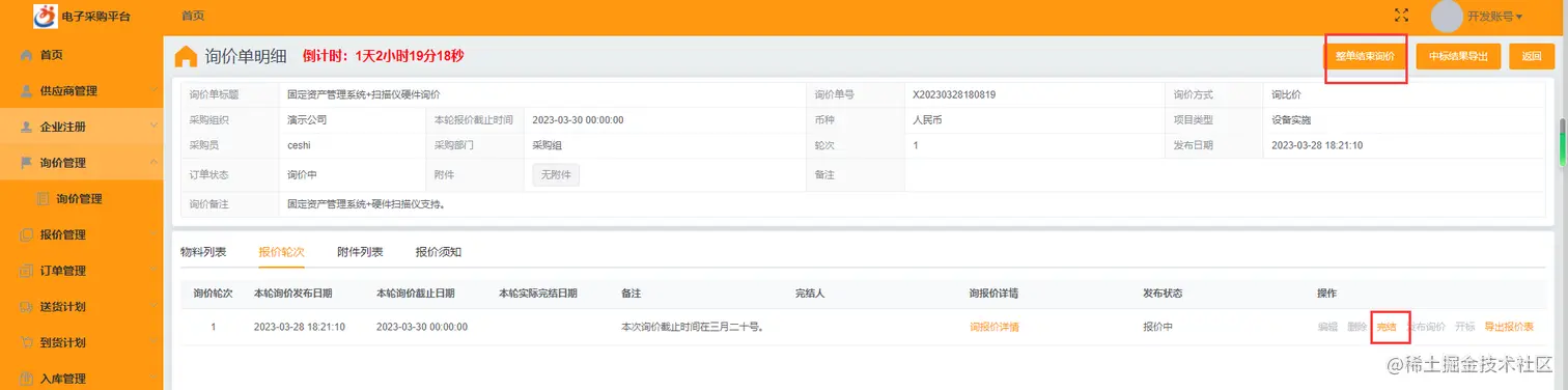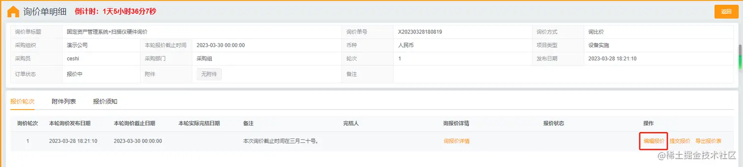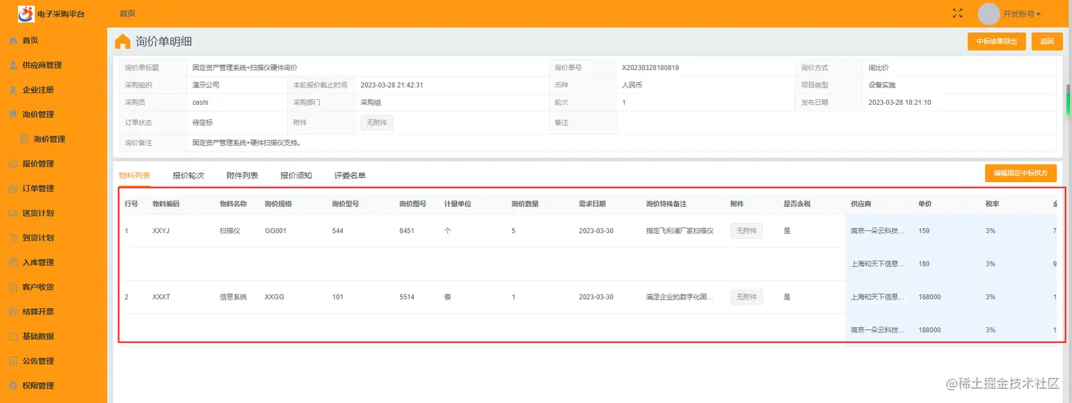 ☆ 整单结束询价后,可以看到竞标供应商的报价: