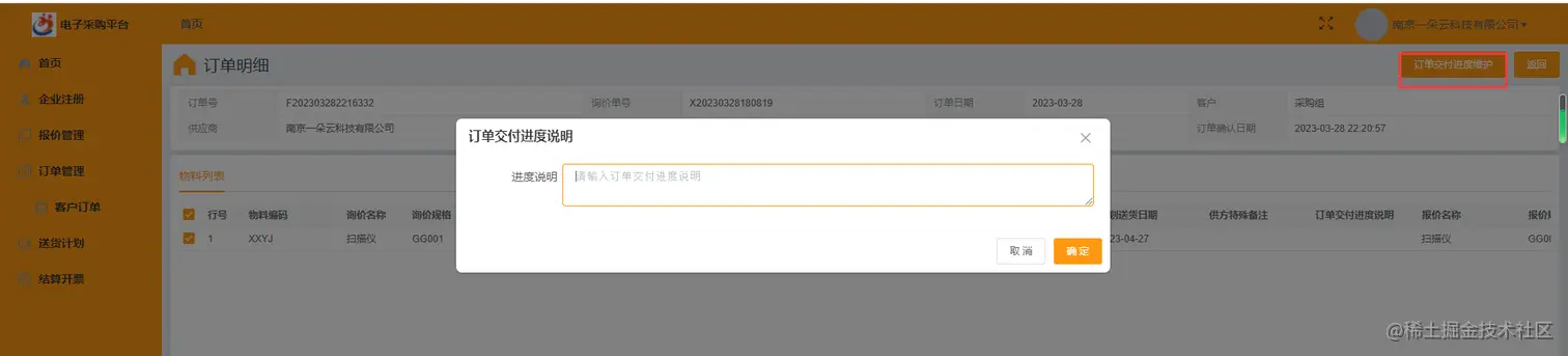 ☆ 中标商编辑计划送货日期等再确定订单,中标商可编辑订单交付进度