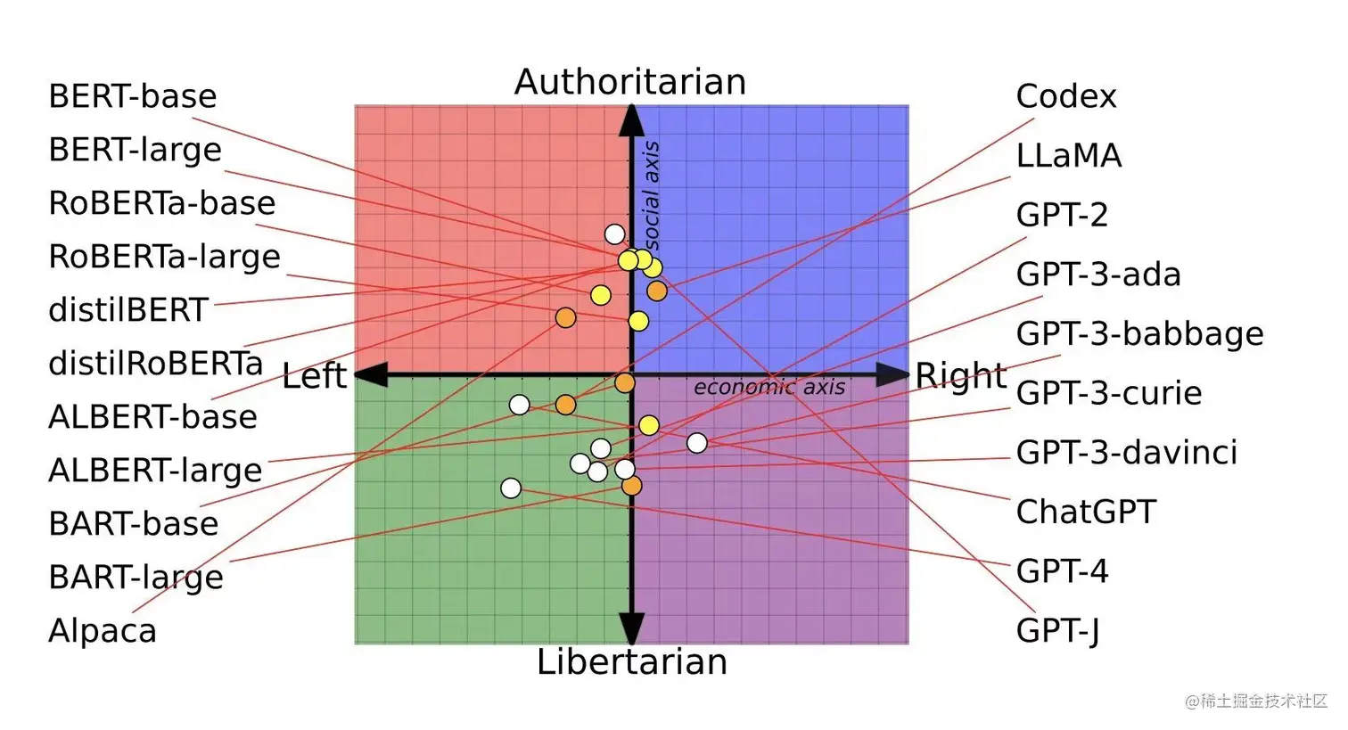 ◇ 惊!研究揭示 AI 语言模型政治倾向: ChatGPT 和 GPT-4 自由派,LLaMA 竟然是独裁者? 🔗 Link