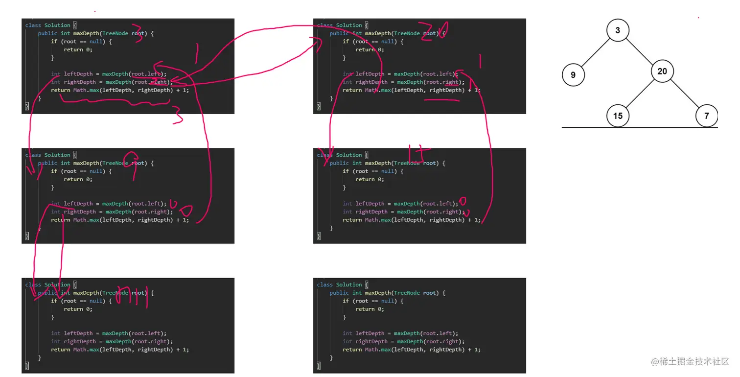 // 这个写在前面,也就意味着多进去一次,但是也没差,如果是根节点或者是对应的 左孩子或者右孩子是 null 那么返回的是还是 0