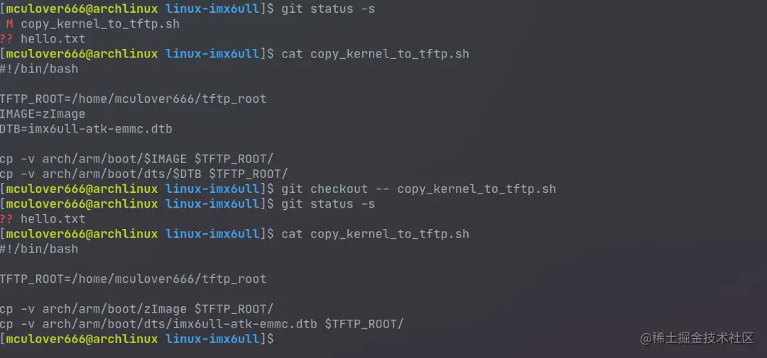 在工作区中干活的时候,如果文件改炸了,需要恢复到上次提交/暂存的状态,重新修改,可以使用命令: