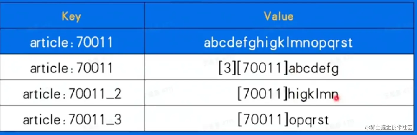 Split Value: When you have a big value associated with a key, instead of storing it as a single large chunk, consider breaking it down: