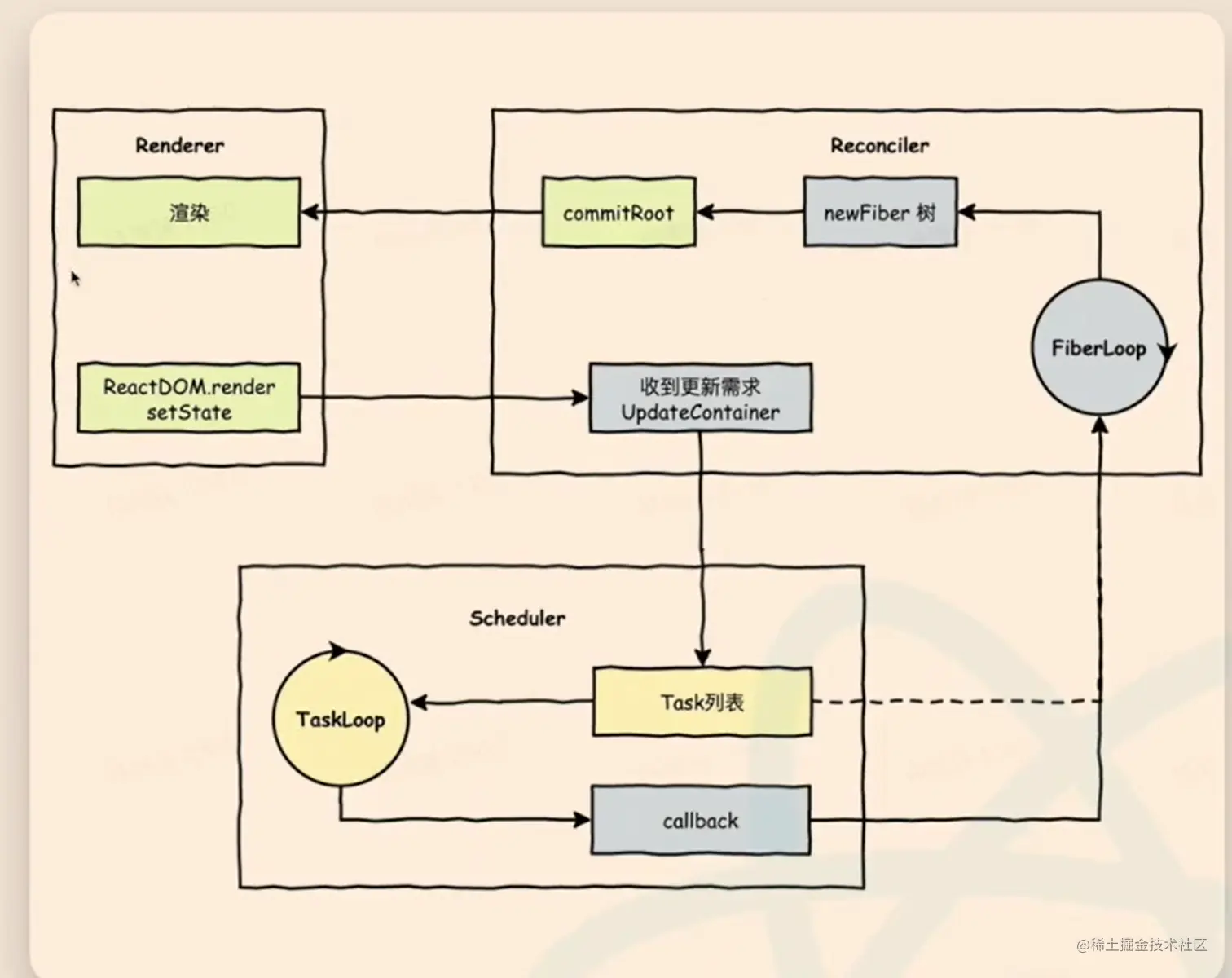在一个 React 应用中一次屏幕更新都会发生以下三个步骤: