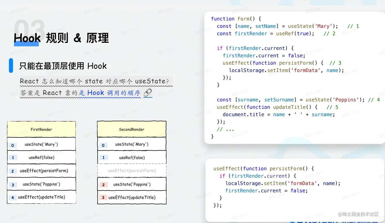 如果你遵循这个原则,那么 Hooks 最终将始终以相同的顺序被调用。