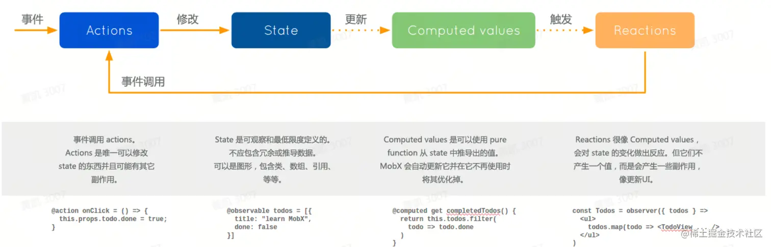 使用了可观察对象,可以直接修改状态,不需要写 Action 和 Reducer,也不需要引入各种复杂的中间件。