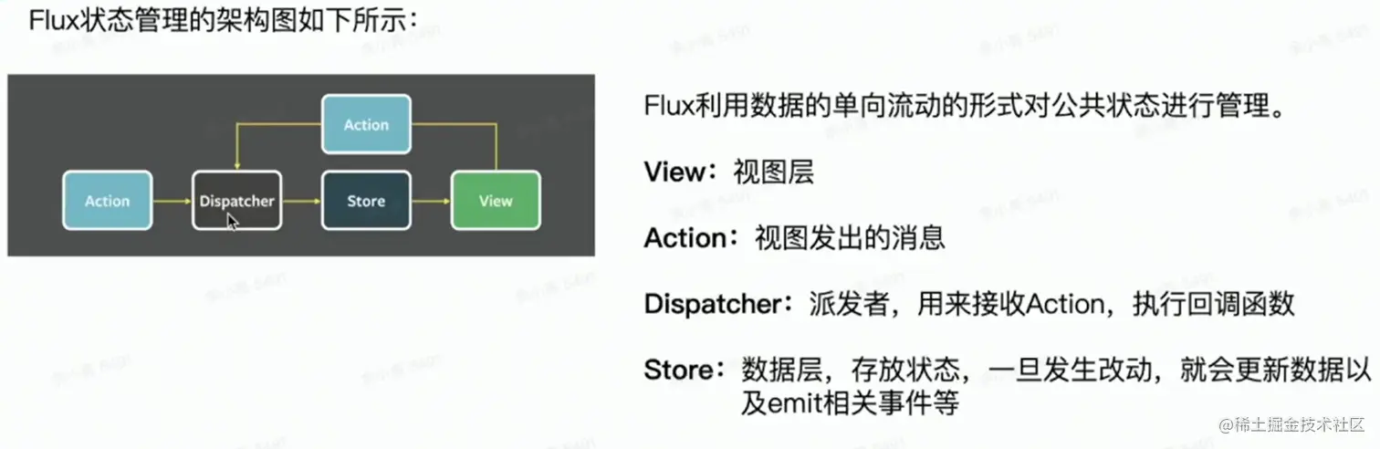 Dispatcher 通过 register 注册事件,然后根据传递过来的 action,来改变 store 中的 state