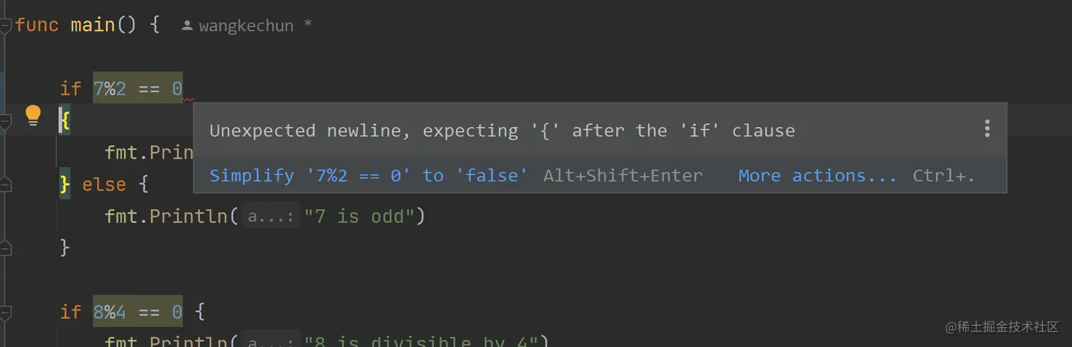 有一点需要注意:导入的包中不能含有代码中没有使用到的包,否则 Go 编译器会报编译错误,例如 imported and not used: "xxx",”xxx” 表示包名。如果在GoLand中出现了冗余的包,它会自动给你删除冗余包的导入。也可以使用一个 import 关键字导入多个包,此时需要用括号( )将包的名字包围起来,并且每个包名占用一行,也就是写成下面的样子: