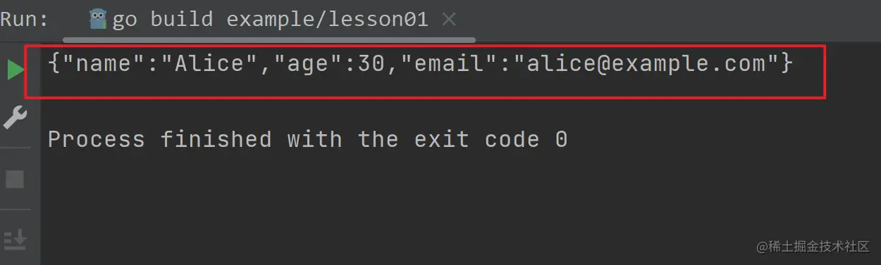 jsonStr := `{"name":"Bob","age":25,"email":"bob@example.com"}`
