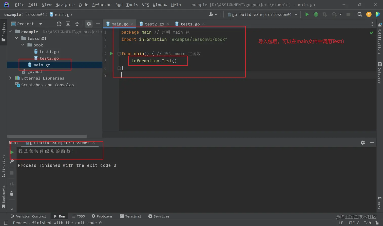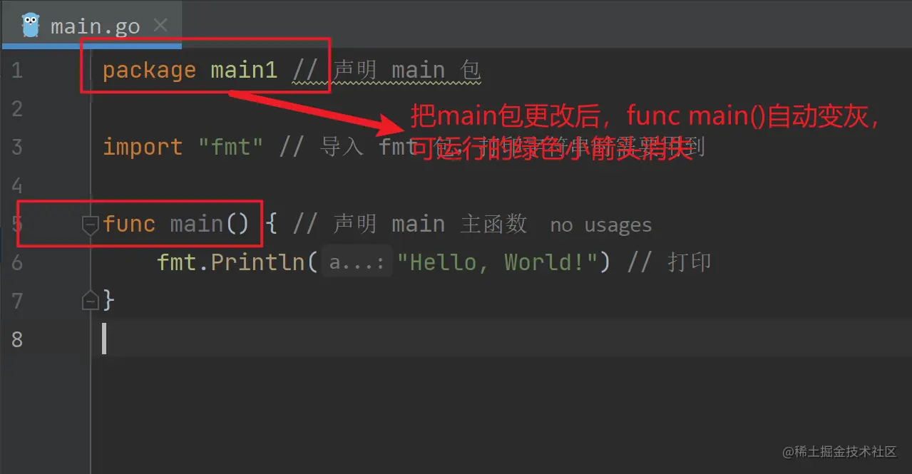 - 一个 main 包中也必须有且仅有一个 main 函数。