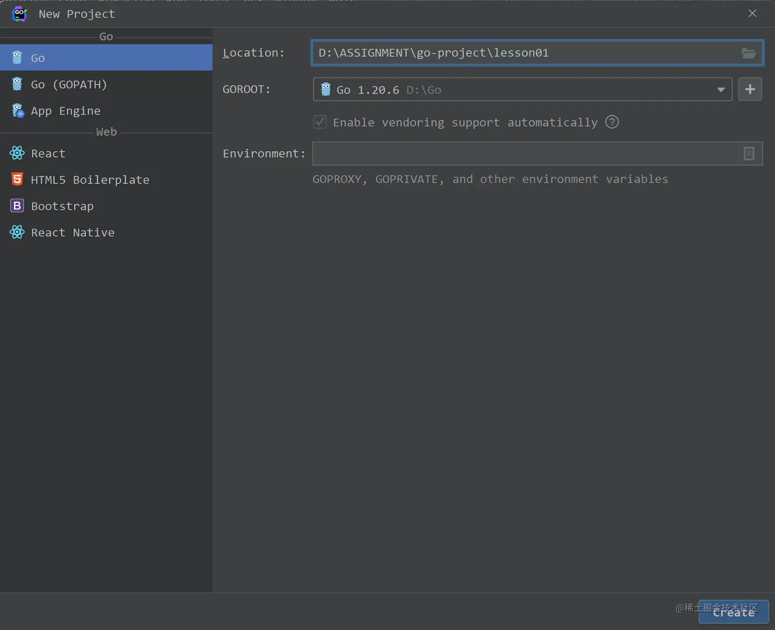 首先,新建一个go的项目:
