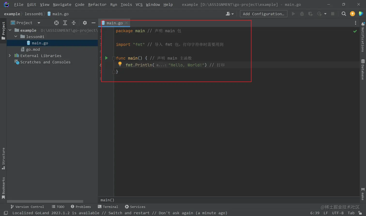 1、在GoLand中运行一个Hello World