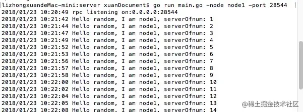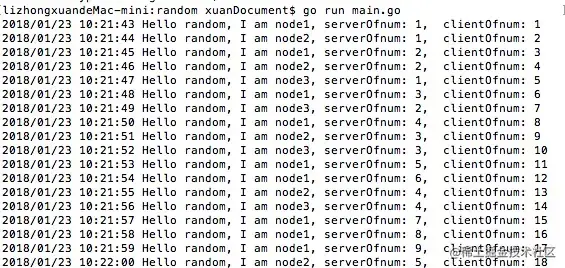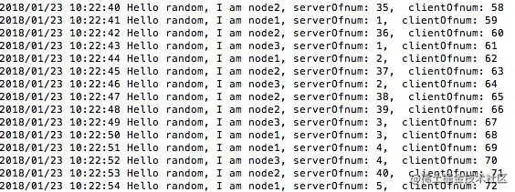 再次启动node1,node3服务端,client自动连接上,并继续随机访问3台服务端: