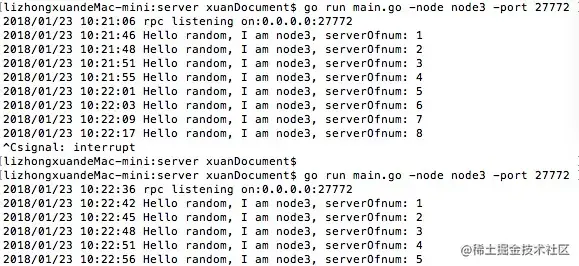 服务端的代码如下, 使用以下命令运行3个服务进程,再启动客户端。