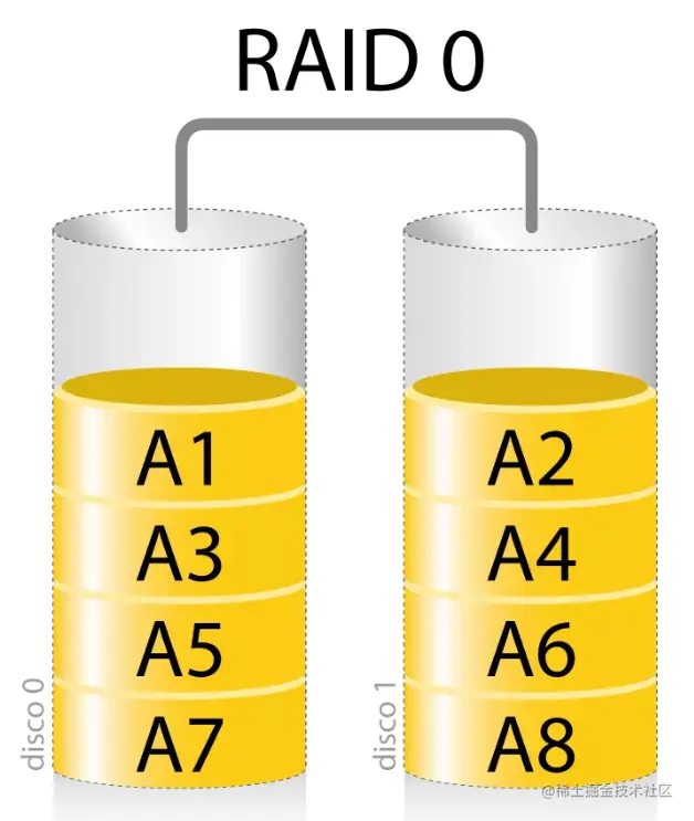 - RAID 0:使用数据条带化的方式将数据分散存储在多个磁盘驱动器上