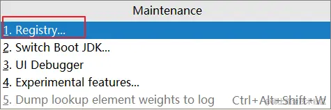 在项目任意页面中使用组合快捷键“Ctrl+Shift+Alt+/”打开Maintenance选项框,选中并打开Registry