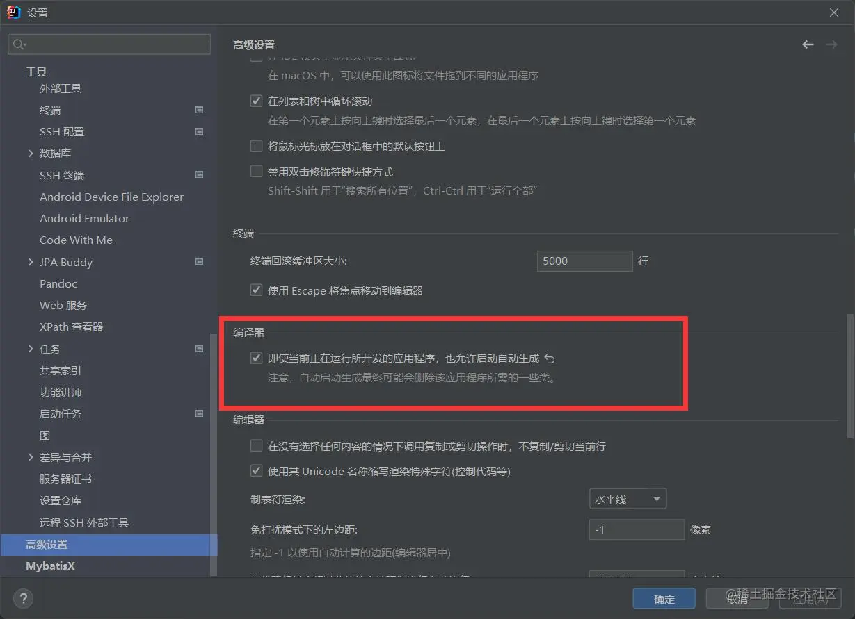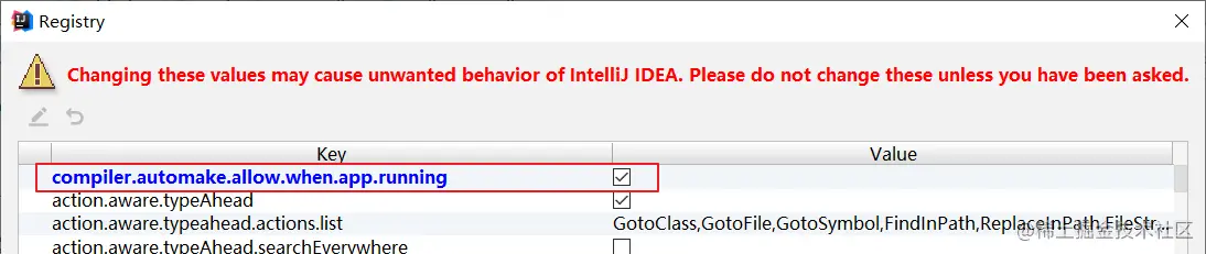 找到“compiler.automake.allow.when.app.running”,将该选项后的Value值勾选