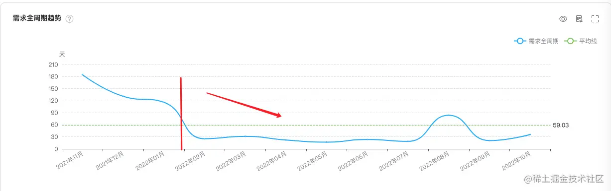 因为「测试周期」缩短,研发单元测试成本几乎不变,所以「需求交付全周期」随之缩短(55 天 -> 35 天)!