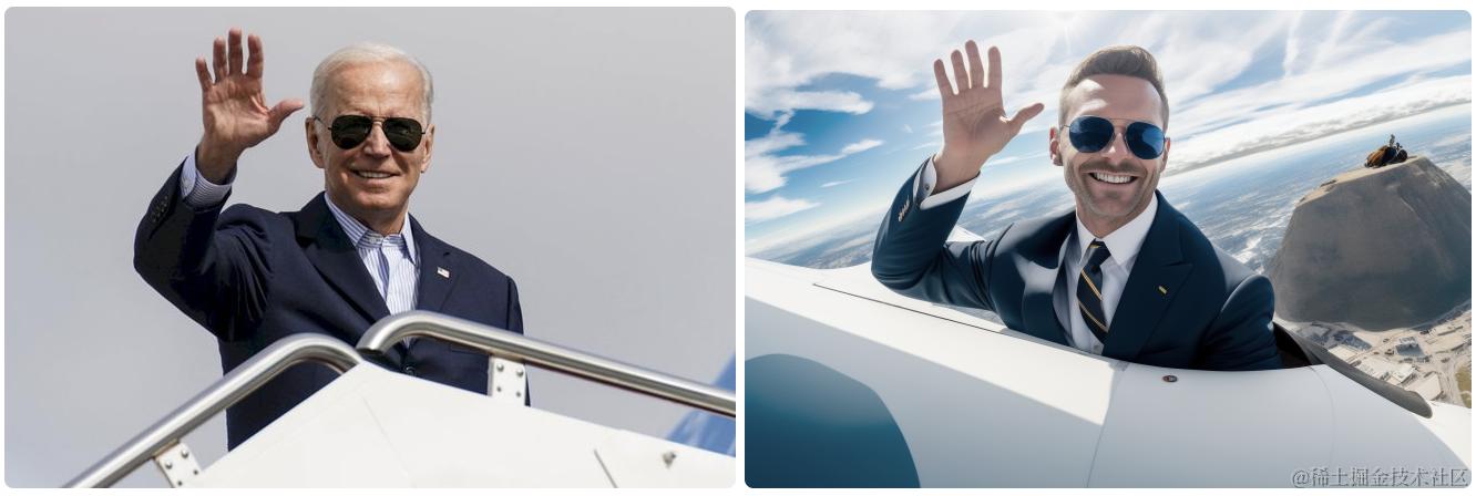 注意看这个骨架图中是有一点手的形状的,所以理论上,如果我们在骨架图中描绘了手的形状,生成图片中的手是会受到一定约束的。再来一张总统挥手的照片,这只手看着还不错,不过也是生成了很多张之后挑选出来的。