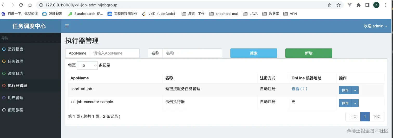 2.3 调度中心管理界面配置执行器和任务
