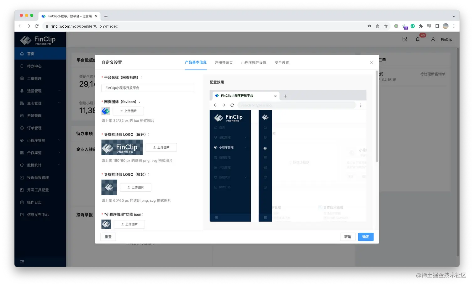 在 FinClip 的私有化版本中,我们已经全部支持用户对于 FinClip 产品后台中的所有“FinClip”字样与 logo 进行自定义配置。购买了私有化版本的用户可以根据企业自有的 VI 与设计规范对产品中的品牌,标识,版权等内容进行灵活定制开发。