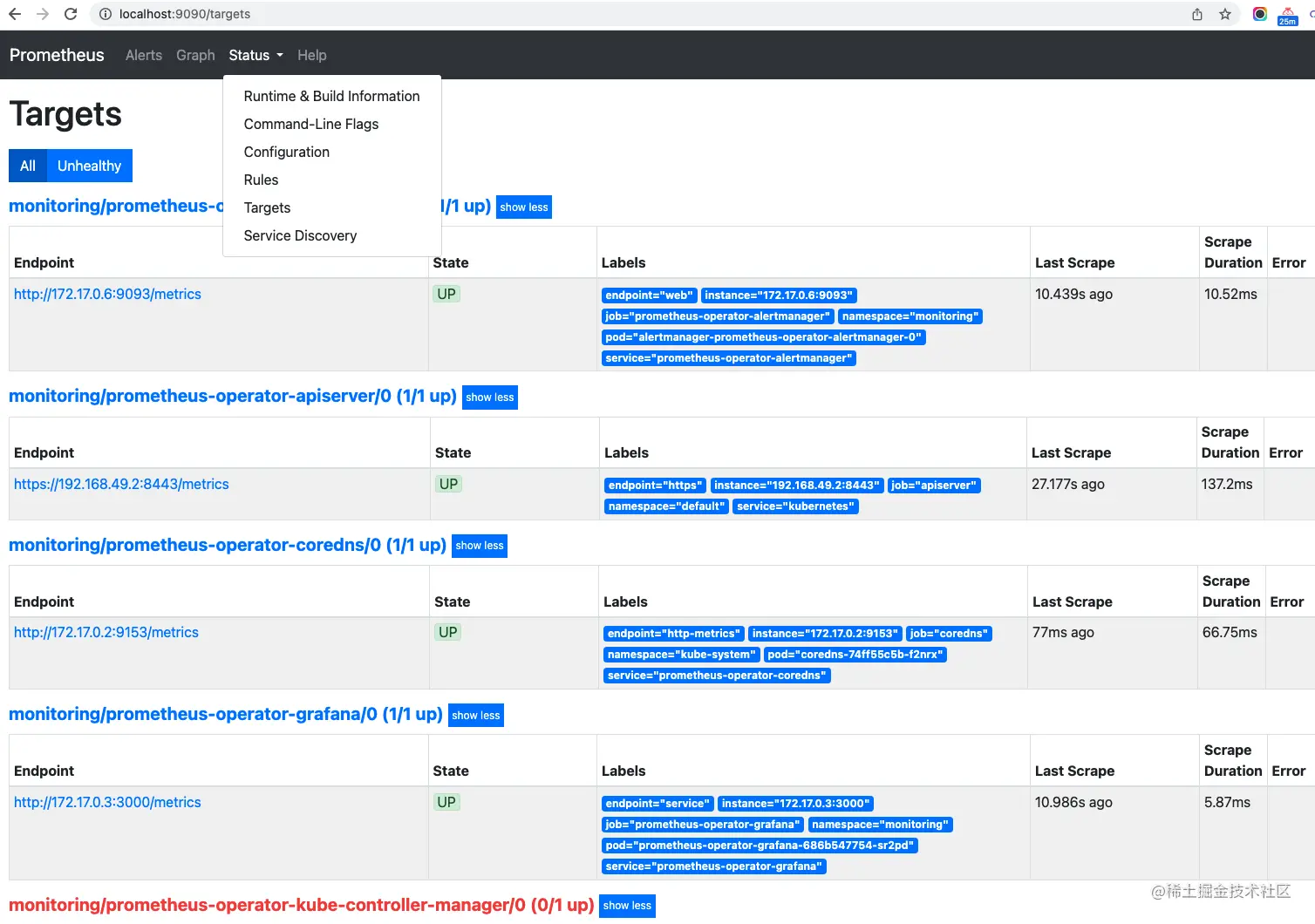 其中 etcd这项告警 message = etcd cluster "kube-etcd": members are down (1).是因为用minikube,etcd节点本来就不足~