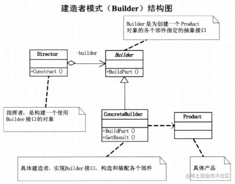 应用:创建一些复杂的对象,这些对象内部构建间的建造顺序通常是稳定的,但对象内部的构建通常面临着复杂的变化。