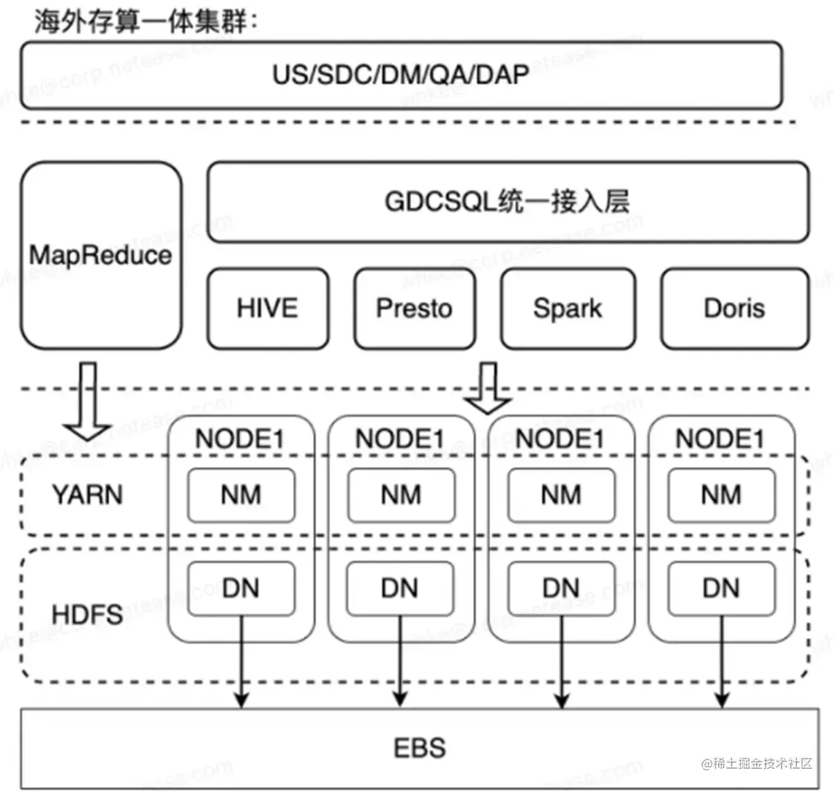 2020 年初,随着网易互娱的海外业务增长与海外数据合规的需求,我们开始了网易互娱大数据离线计算平台迁移出海的工作。前期,我们采取了云主机裸机加上高性能 EBS 块存储的方案。但是,这个方案存储费用高昂,成本是国内自建机房的数十倍。