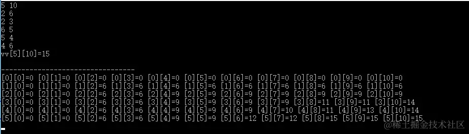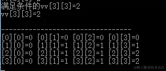 printf("满足条件的vv[%d][%d]=%d\n",i,j,vv[i][j]);