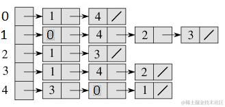 为方便后面的介绍,重新贴一下邻接表的存储方式图: