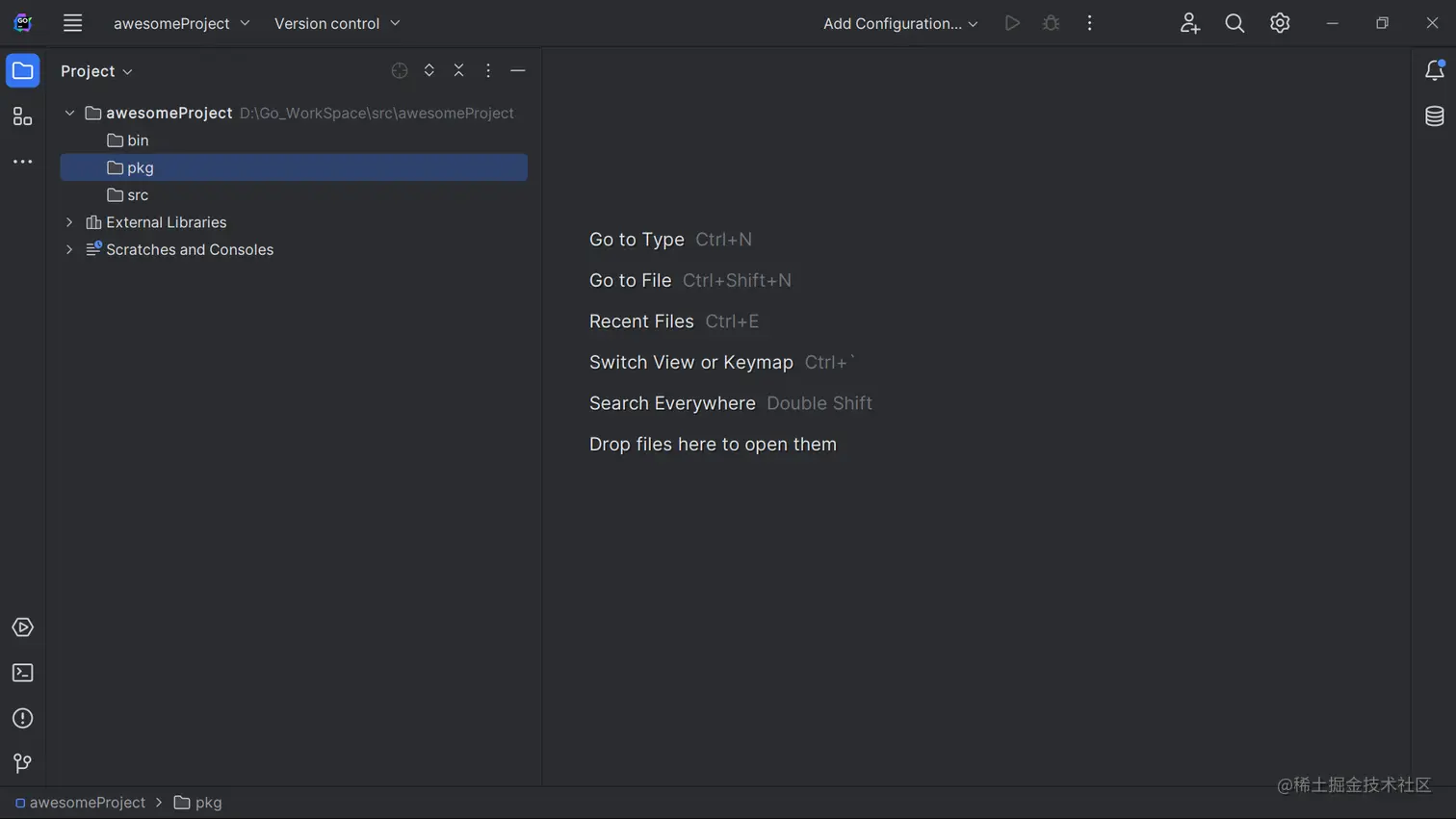 当前的配置可执行文件将输出到 bin文件夹 pkg放置的是编译后的.a文件(如果你就一个main.go该文件夹为空) src就是代码文件了