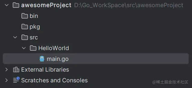 src目录下创建一个文件夹,名字可为项目名,再在里面创建main.go