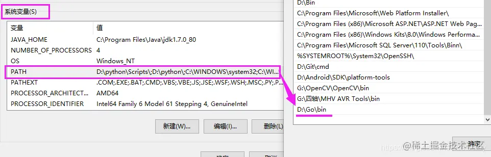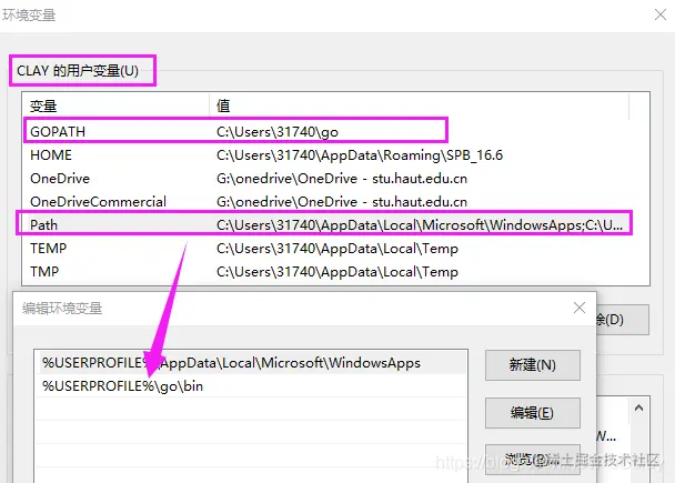 在用户变量里,会自动添加GOPATH并配置PATH。