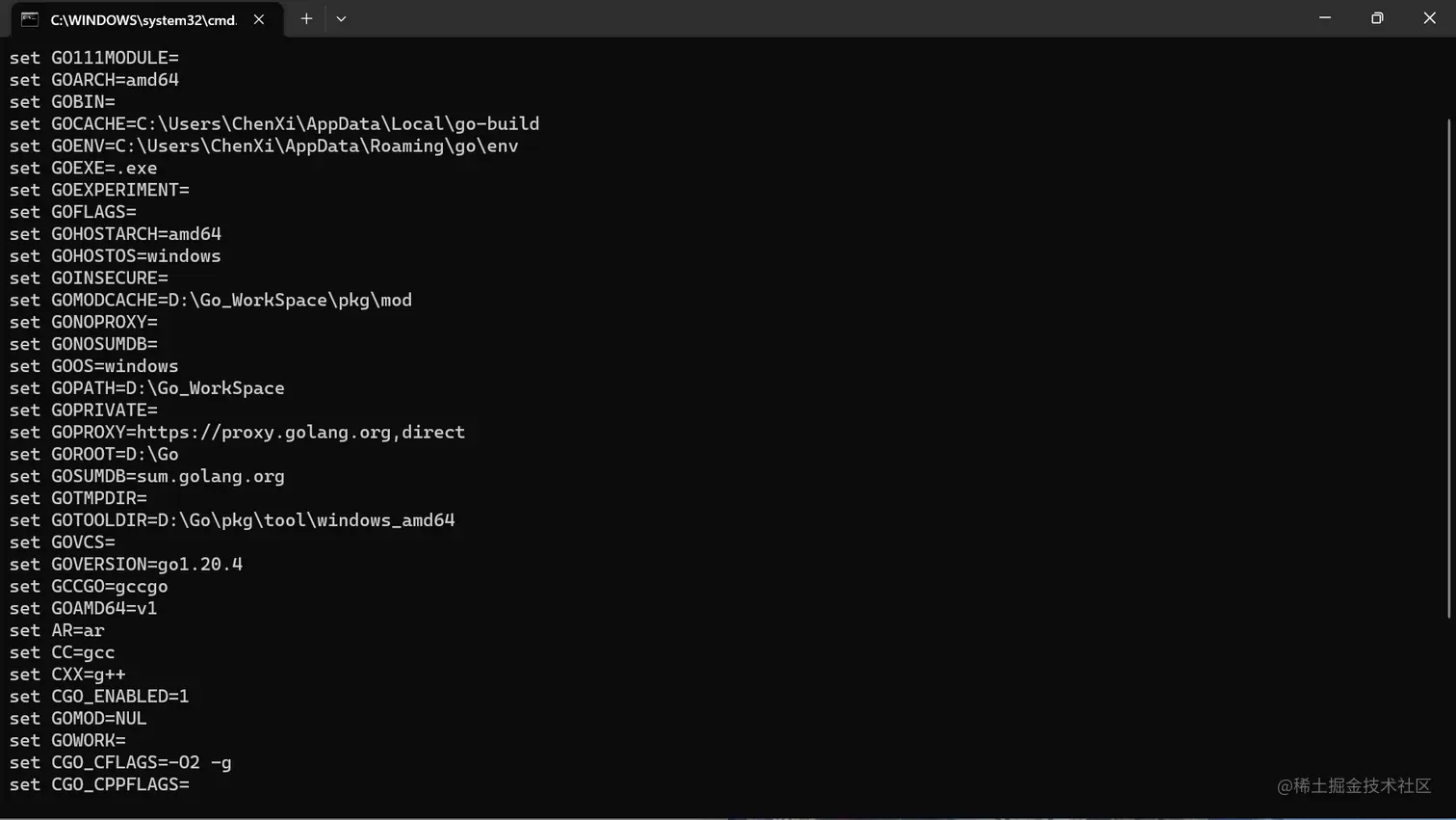 【注】若中间某个过程操作过cmd,且对应的窗口没有关闭,输入go env可能对应的信息不准确,这个时候需要重新关闭cmd,再打开。