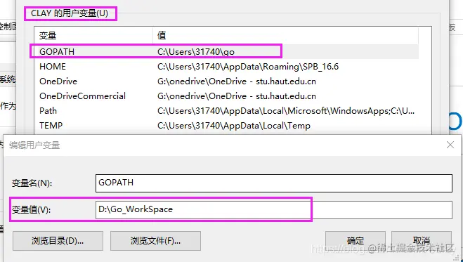 修改用户变量中的GOPATH与系统变量的一致。