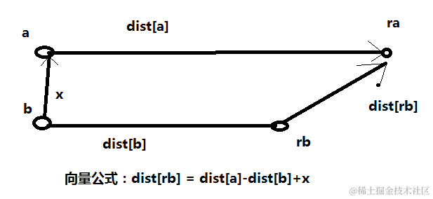 dis[fy]=dis[x]+s-dis[y];//类似于向量