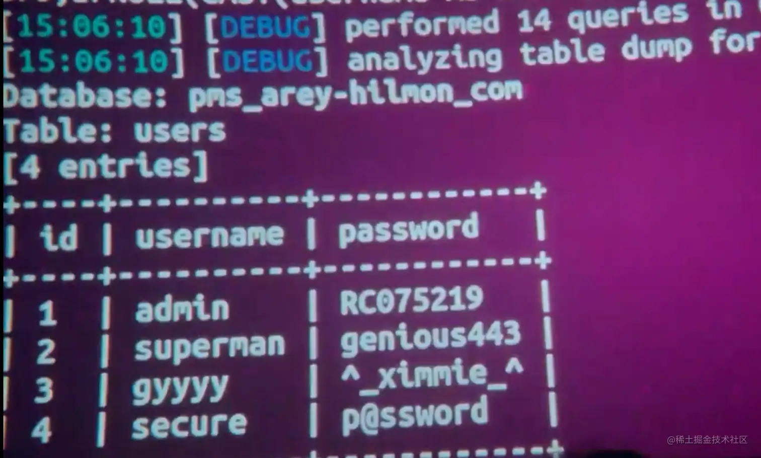 Python中的sqlmap包是一个开源的自动化SQL注入工具,可以自动检测和利用SQL注入漏洞,这就是小潘的技术手段,通过利用SQL注入漏洞,入侵数据库,拿到后台登录密码:
