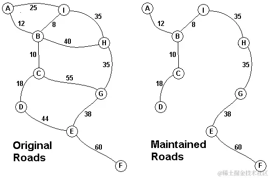 表示A有两个邻点,B和I,AB权值是12,AI权值是25