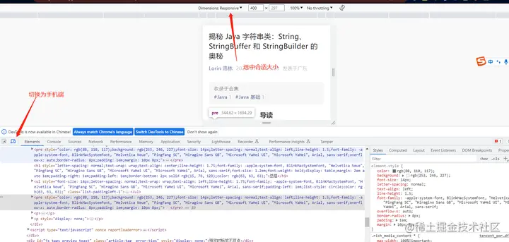 - 除了网页常截图外,还可以切换模拟设备,截取手机网页长截图,首先将浏览器展示模式切换为模拟手机端,选中需要的分辨率,其它操作和上面一致。